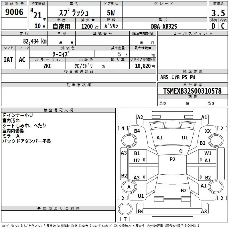 Suzuki SPLASH с аукциона Японии TAA Kanto лот № 9006
