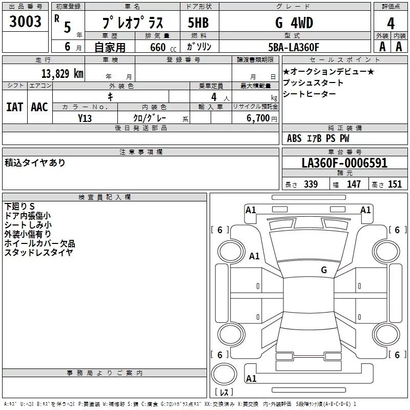 Subaru PLEO PLUS с аукциона Японии TAA Hokkaido лот № 3003