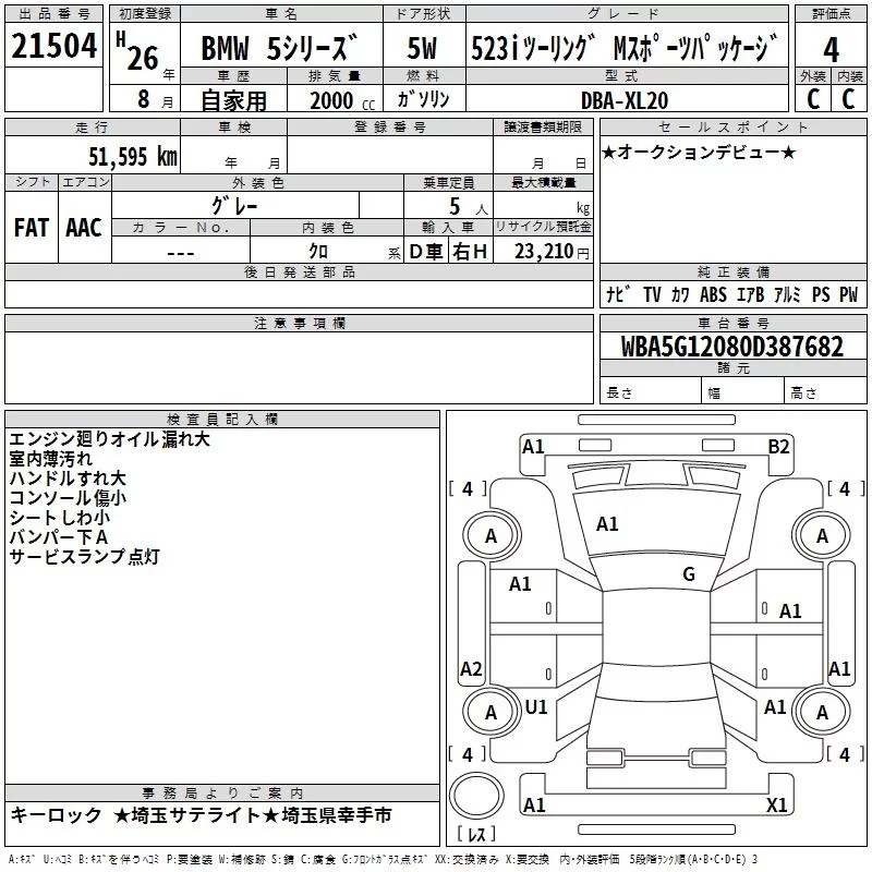 BMW 5-Series с аукциона Японии TAA Kanto лот № 21504