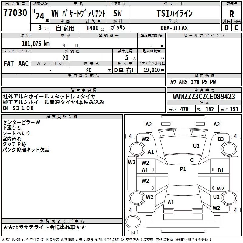 Volkswagen PASSAT VARIANT с аукциона Японии TAA Chubu лот № 77030