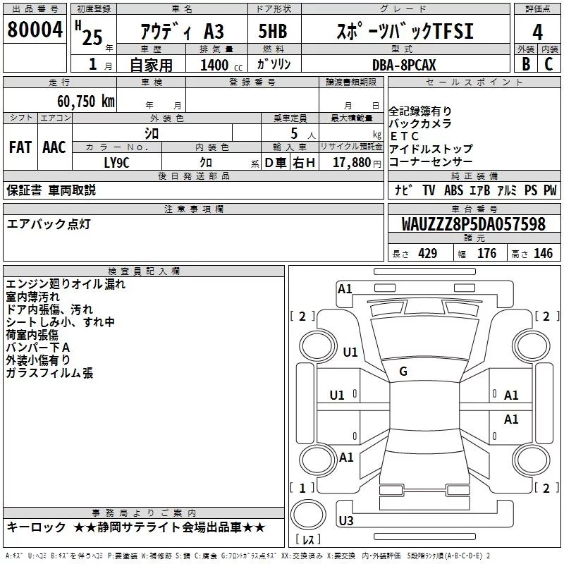 Audi A3 с аукциона Японии TAA Chubu лот № 80004