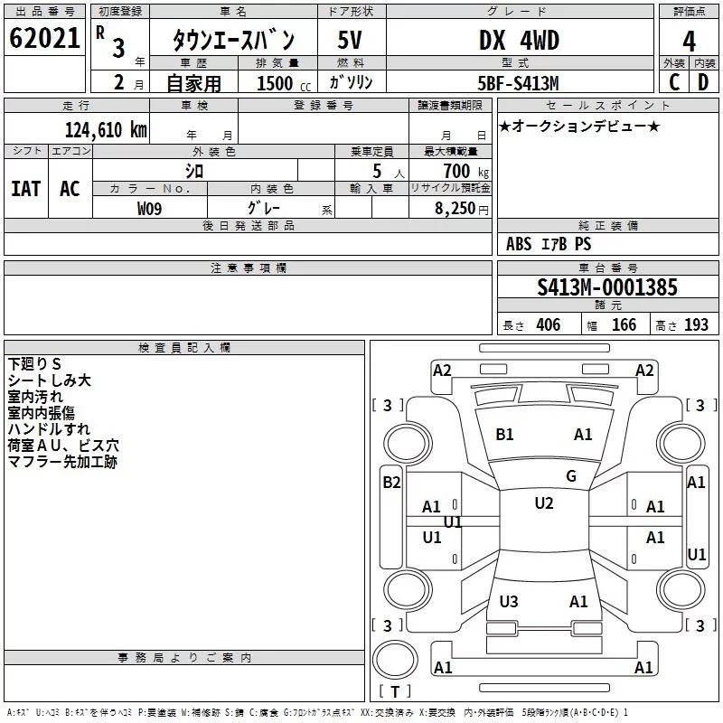 Toyota TOWN ACE VAN с аукциона Японии TAA Hokkaido лот № 62021
