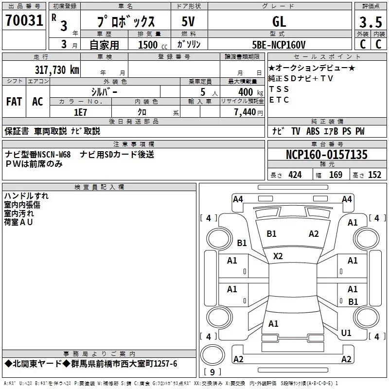 Toyota PROBOX с аукциона Японии TAA Kanto лот № 70031