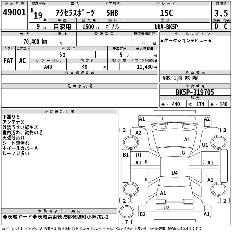 Mazda AXELA с аукциона Японии TAA Kanto лот № 49001