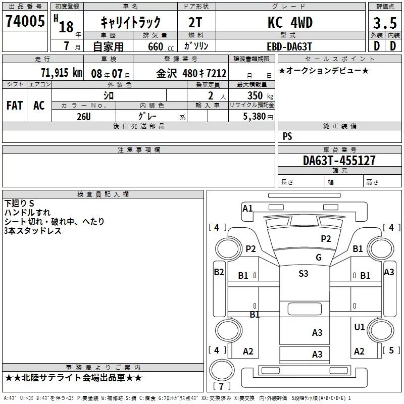 Suzuki CARRY TRUCK с аукциона Японии TAA Chubu лот № 74005