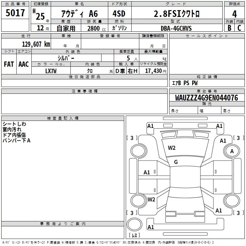 Audi A6 с аукциона Японии TAA Chubu лот № 5017