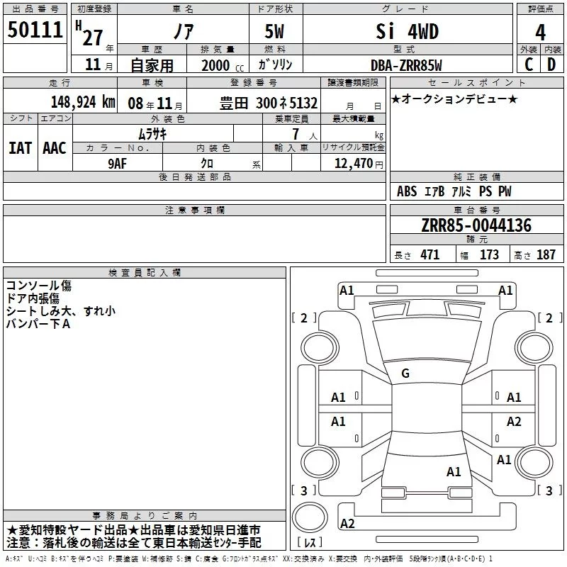 Toyota NOAH с аукциона Японии TAA Chubu лот № 50111