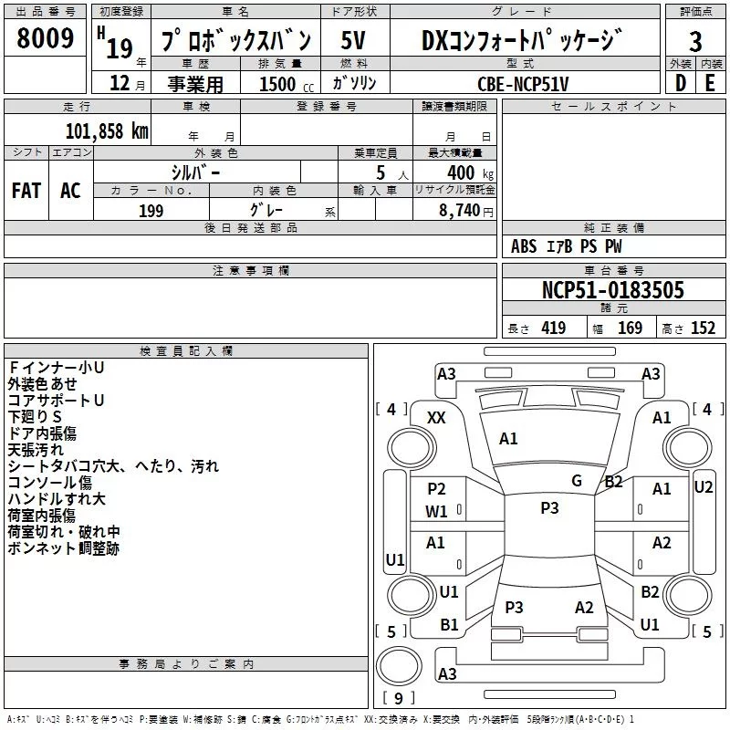 Toyota PROBOX с аукциона Японии TAA Hokkaido лот № 8009