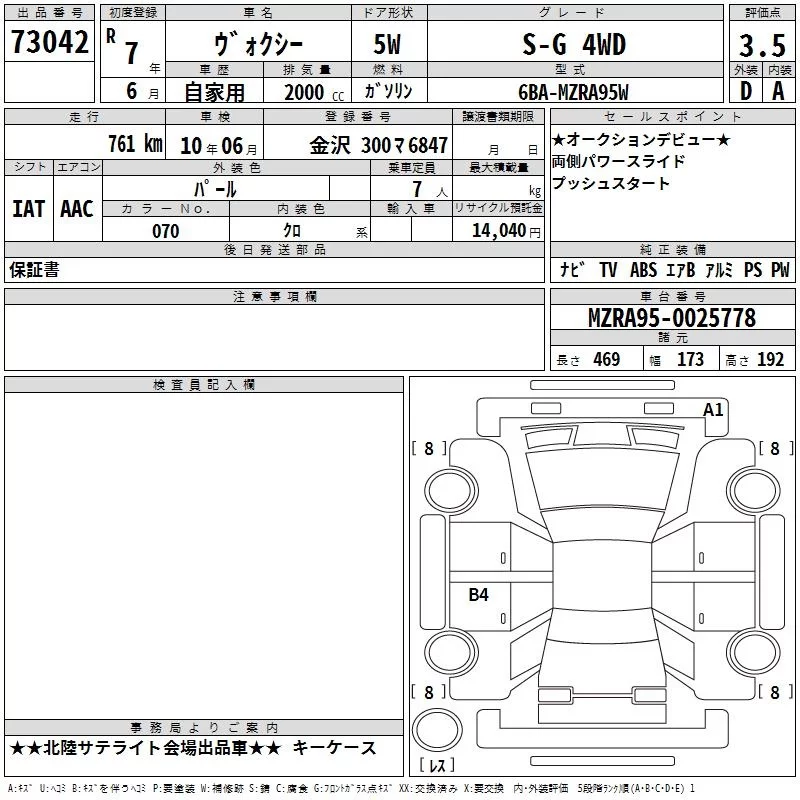 Toyota VOXY с аукциона Японии TAA Chubu лот № 73042