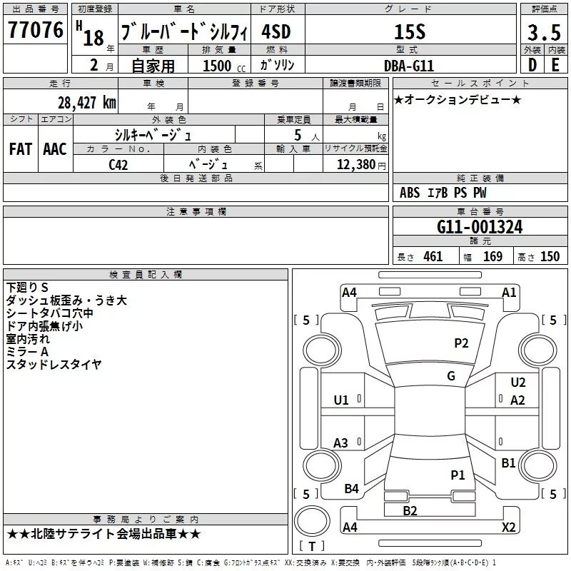 Nissan SYLPHY с аукциона Японии TAA Chubu лот № 77076