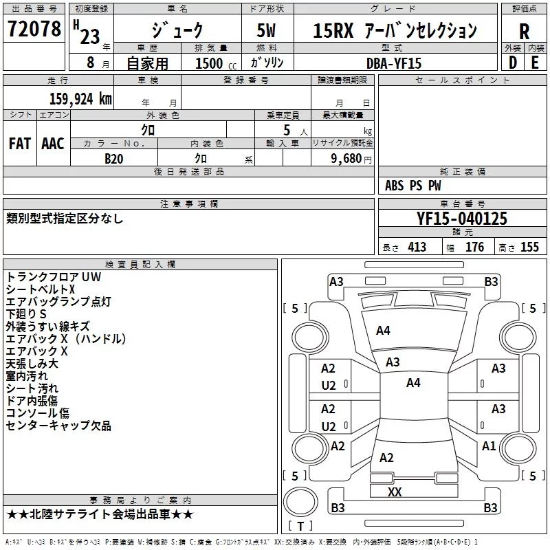 Nissan JUKE с аукциона Японии TAA Chubu лот № 72078