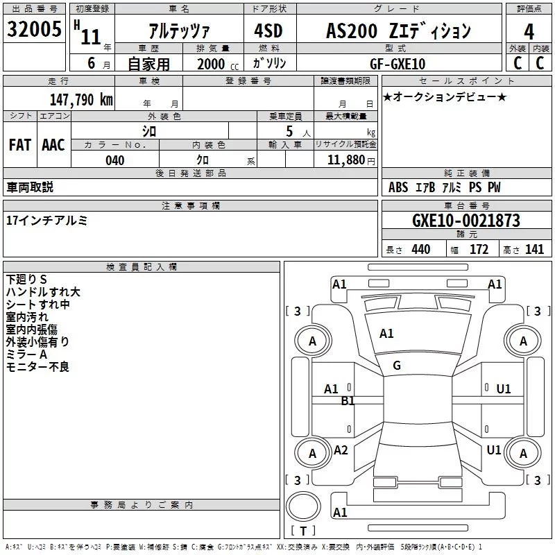 Toyota ALTEZZA с аукциона Японии TAA Kanto лот № 32005