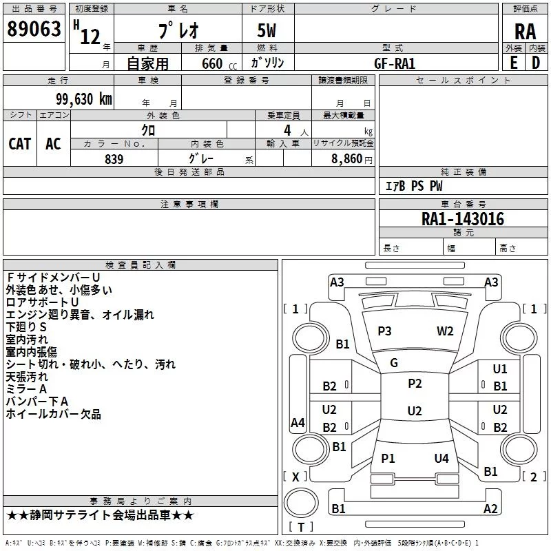 Subaru PLEO с аукциона Японии TAA Chubu лот № 89063