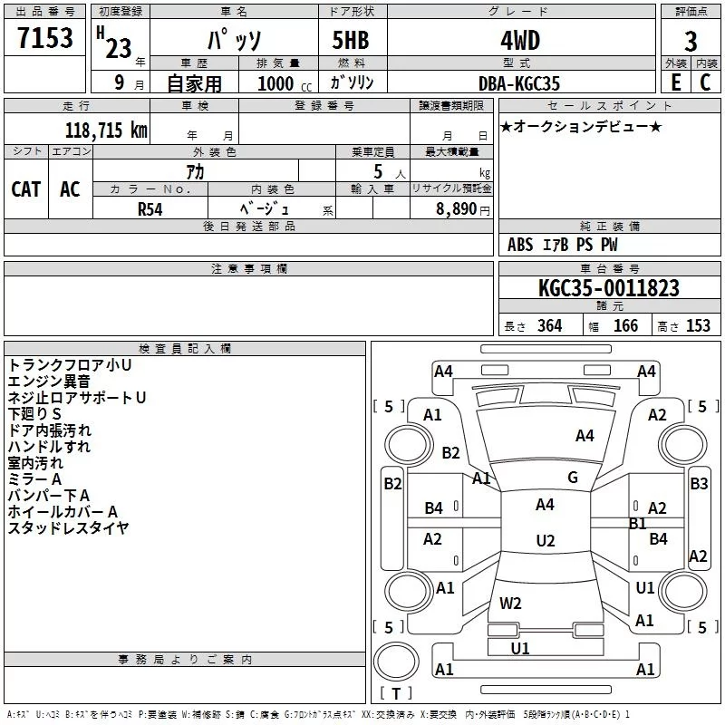 Toyota PASSO с аукциона Японии TAA Hokkaido лот № 7153