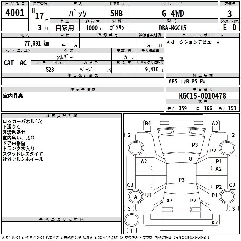 Toyota PASSO с аукциона Японии TAA Chubu лот № 4001