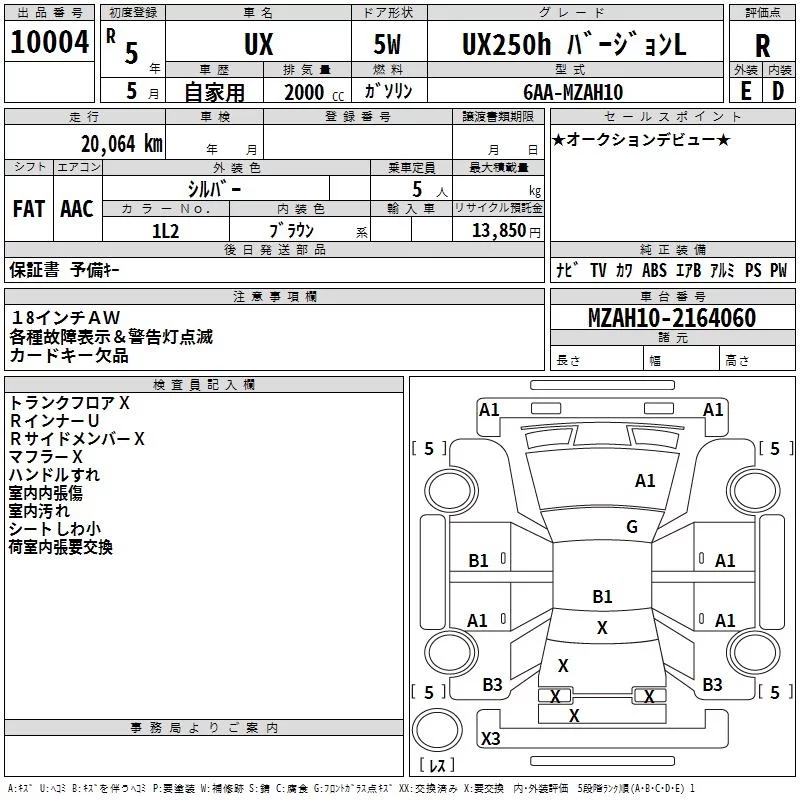 Lexus UX с аукциона Японии TAA Kanto лот № 10004