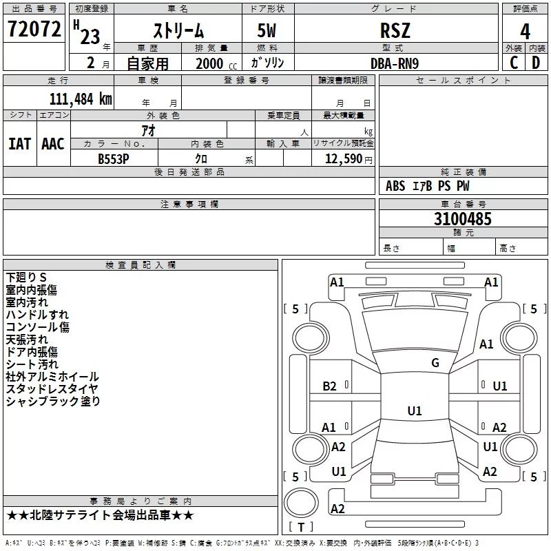 Honda STREAM с аукциона Японии TAA Chubu лот № 72072