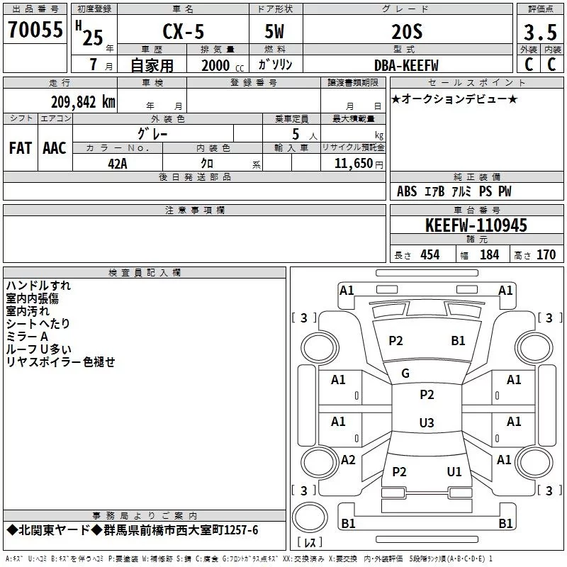 Mazda CX-5 с аукциона Японии TAA Kanto лот № 70055