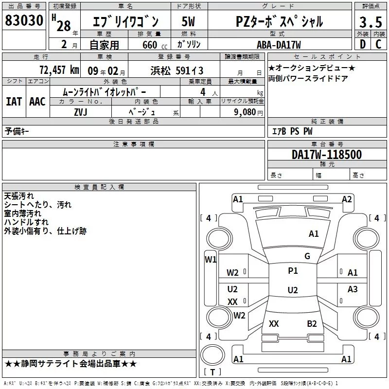 Suzuki EVERY WAGON с аукциона Японии TAA Chubu лот № 83030