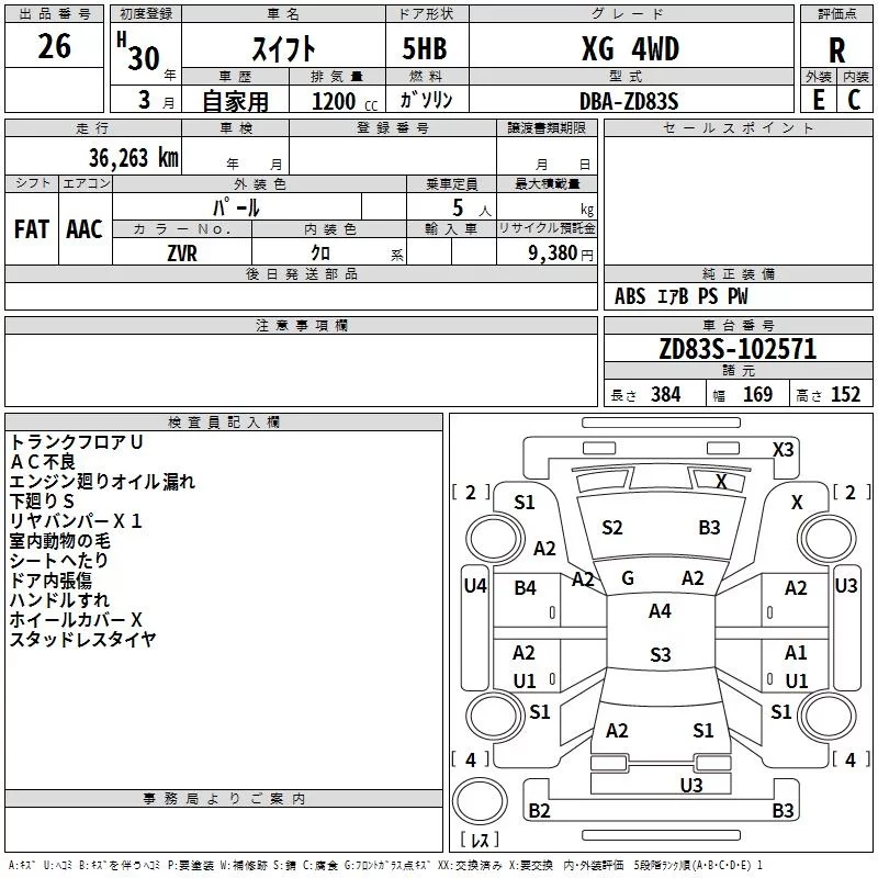 Suzuki SWIFT с аукциона Японии TAA Hokkaido лот № 26