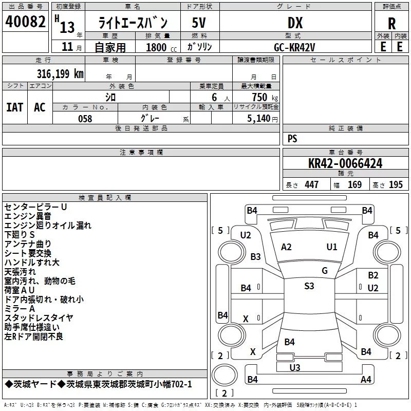 Toyota LITE ACE VAN с аукциона Японии TAA Kanto лот № 40082
