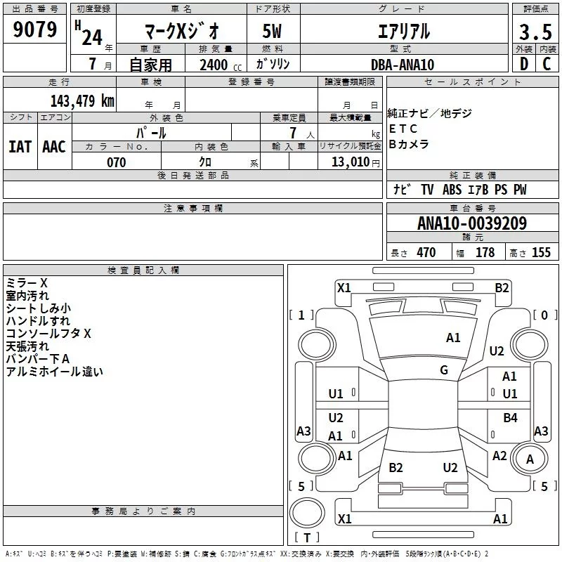 Toyota MARK X ZIO с аукциона Японии TAA Kanto лот № 9079