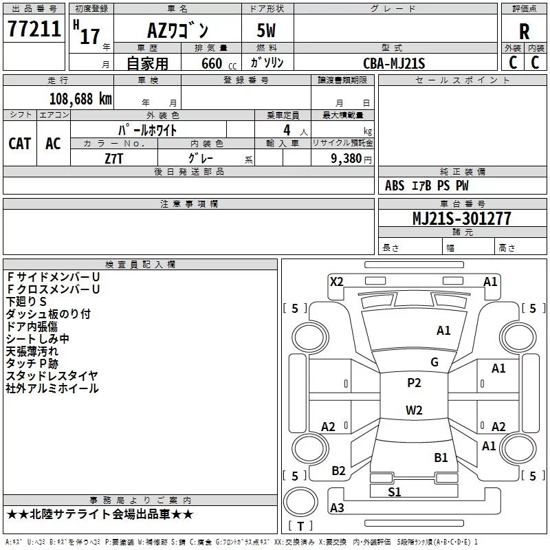 Mazda AZ WAGON с аукциона Японии TAA Chubu лот № 77211