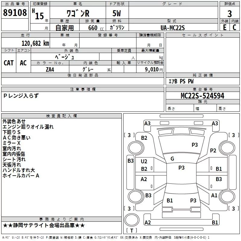 Suzuki WAGON R с аукциона Японии TAA Chubu лот № 89108