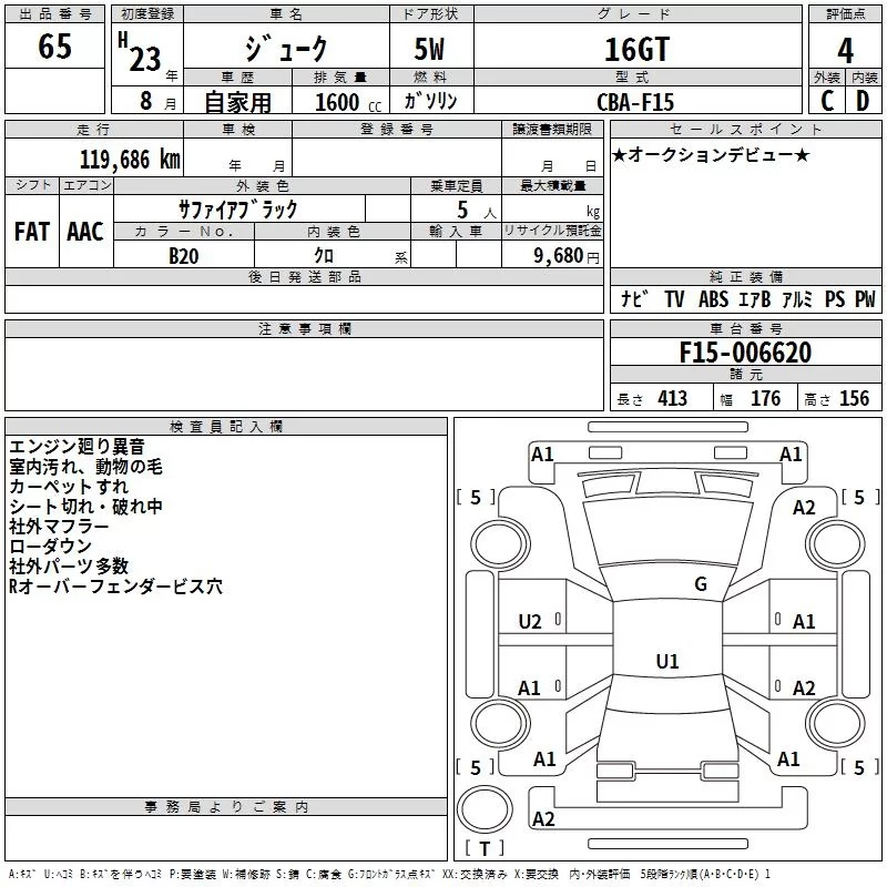 Nissan JUKE с аукциона Японии TAA Kanto лот № 65