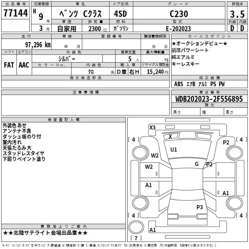Mercedes-Benz C CLASS с аукциона Японии TAA Chubu лот № 77144