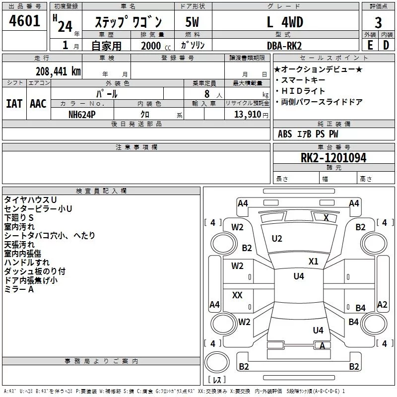 Honda STEP WAGON с аукциона Японии TAA Chubu лот № 4601