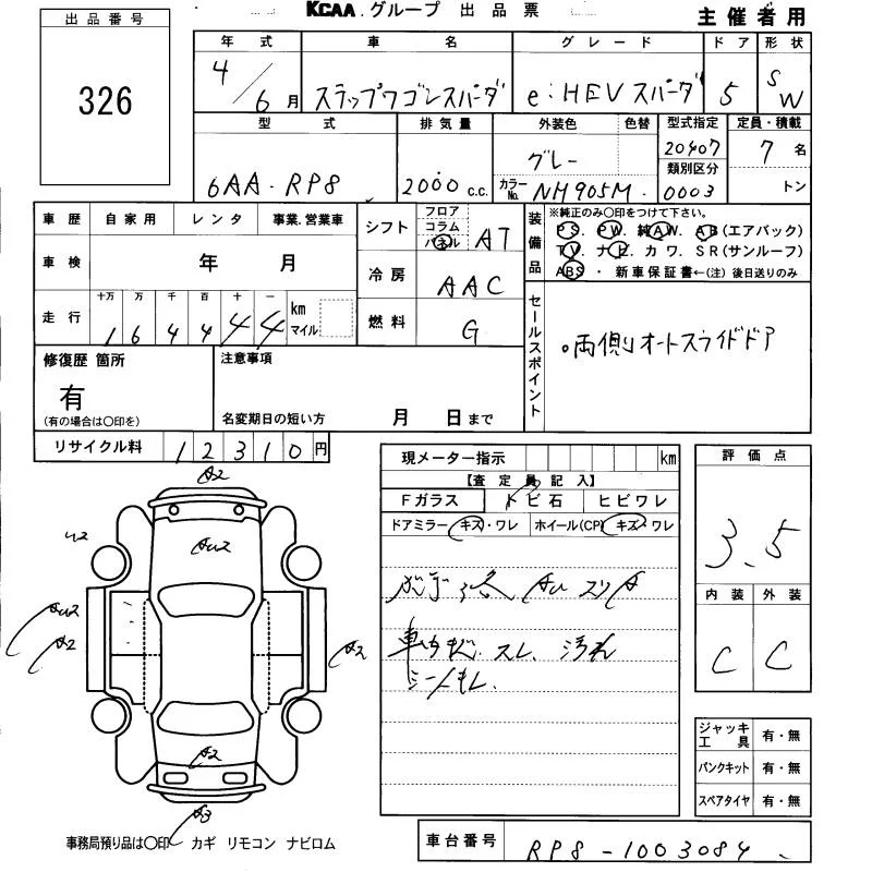 Honda STEP WAGON с аукциона Японии KCAA Fukuoka лот № 326