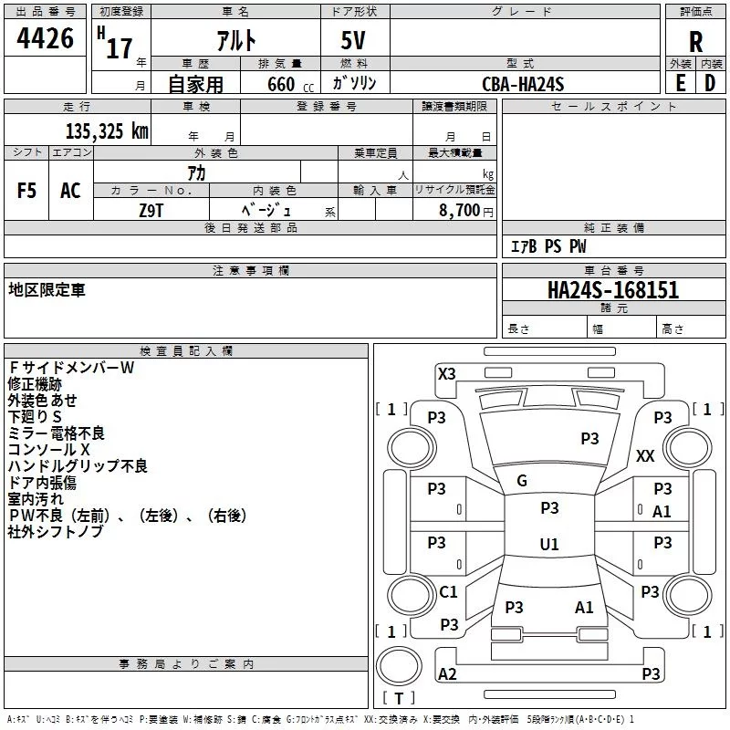 Suzuki ALTO с аукциона Японии TAA Chubu лот № 4426