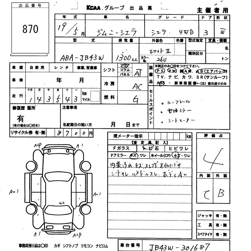 Suzuki JIMNY SIERRA с аукциона Японии KCAA Fukuoka лот № 870