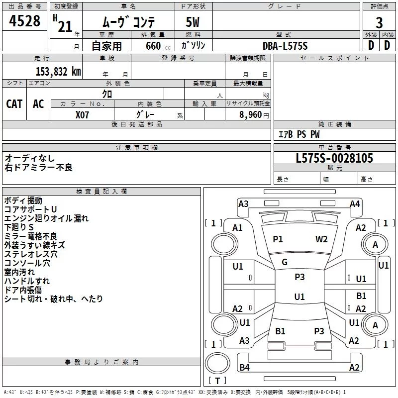 Daihatsu MOVE CONTE с аукциона Японии TAA Chubu лот № 4528