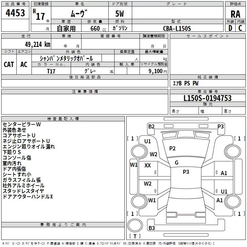 Daihatsu MOVE с аукциона Японии TAA Chubu лот № 4453