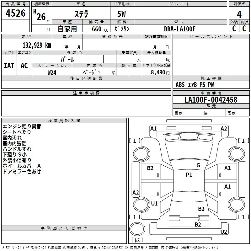 Subaru STELLA с аукциона Японии TAA Chubu лот № 4526