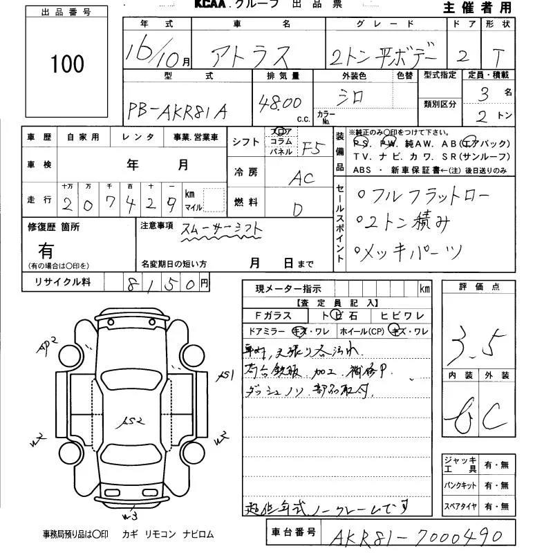 Nissan ATLAS с аукциона Японии KCAA Fukuoka лот № 100