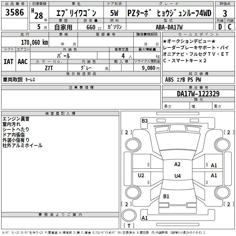 Suzuki EVERY WAGON с аукциона Японии TAA Chubu лот № 3586