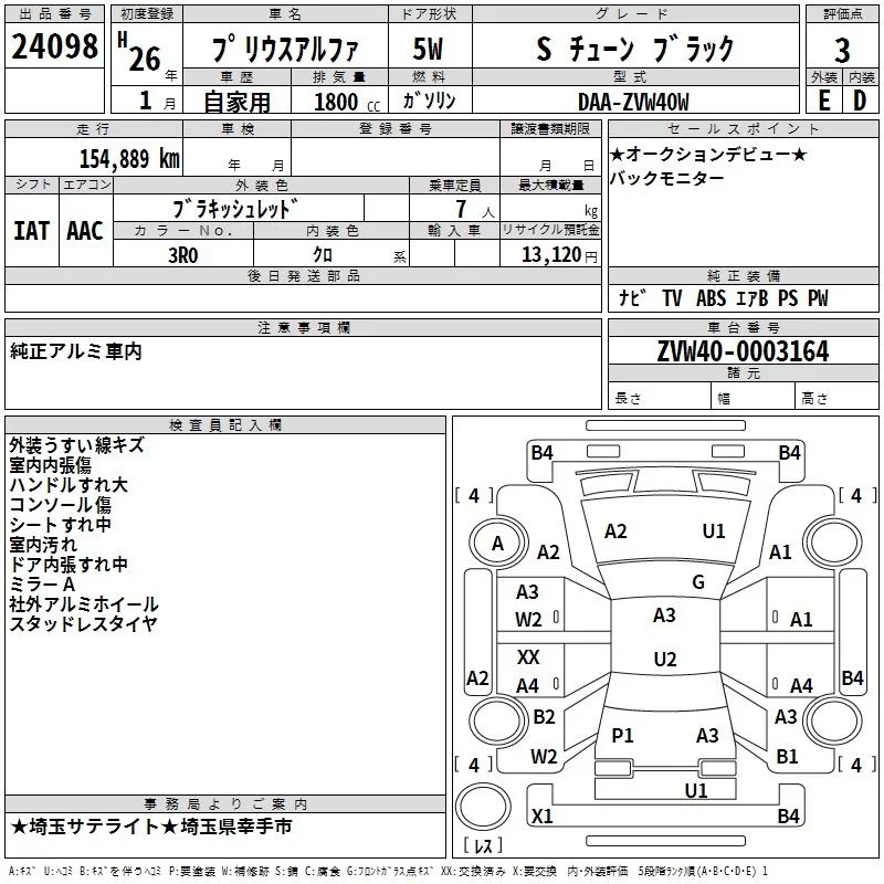 Toyota PRIUS ALPHA с аукциона Японии TAA Kanto лот № 24098