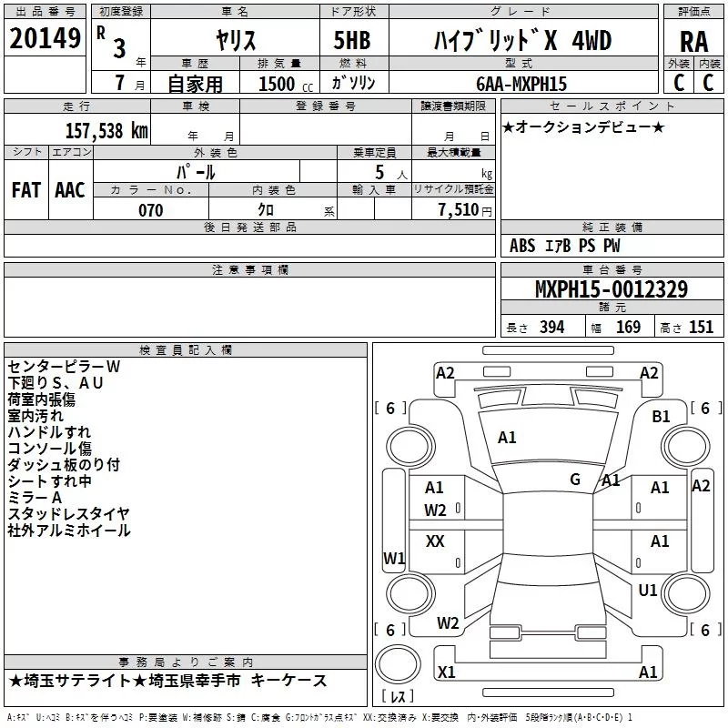 Toyota YARIS с аукциона Японии TAA Kanto лот № 20149