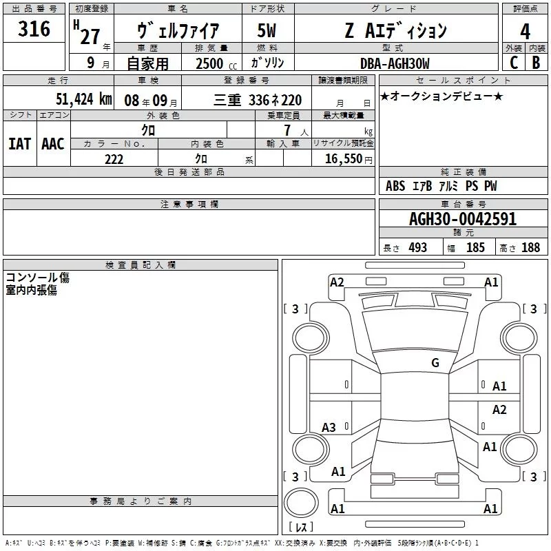 Toyota VELLFIRE с аукциона Японии TAA Chubu лот № 316
