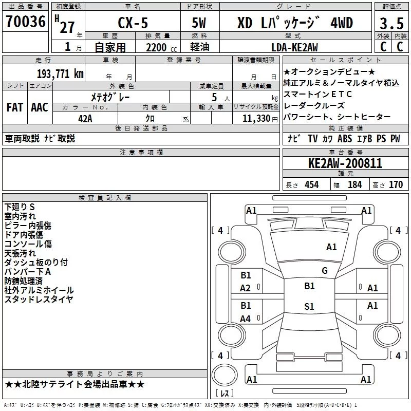 Mazda CX-5 с аукциона Японии TAA Chubu лот № 70036