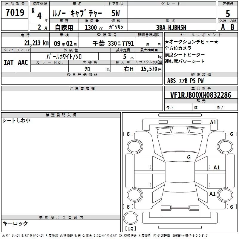 Renault Captur с аукциона Японии TAA Kanto лот № 7019
