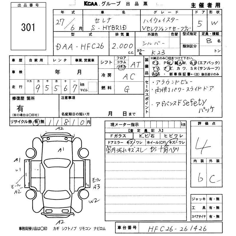 Nissan SERENA с аукциона Японии KCAA Fukuoka лот № 301