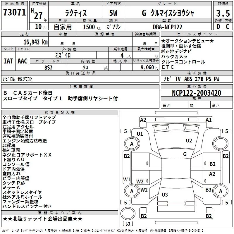 Toyota RACTIS с аукциона Японии TAA Chubu лот № 73071