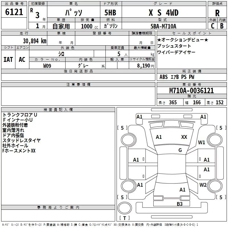Toyota PASSO с аукциона Японии TAA Hokkaido лот № 6121