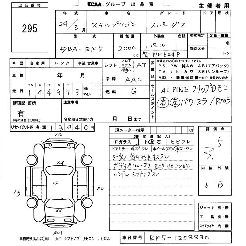 Honda STEP WAGON с аукциона Японии KCAA Fukuoka лот № 295