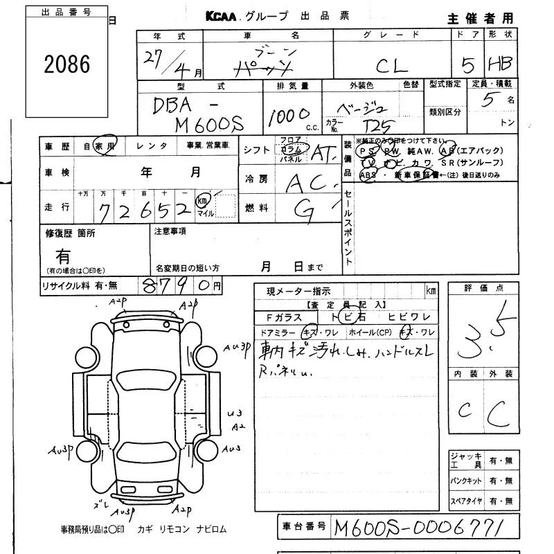 Daihatsu Boon с аукциона Японии KCAA Fukuoka лот № 2086
