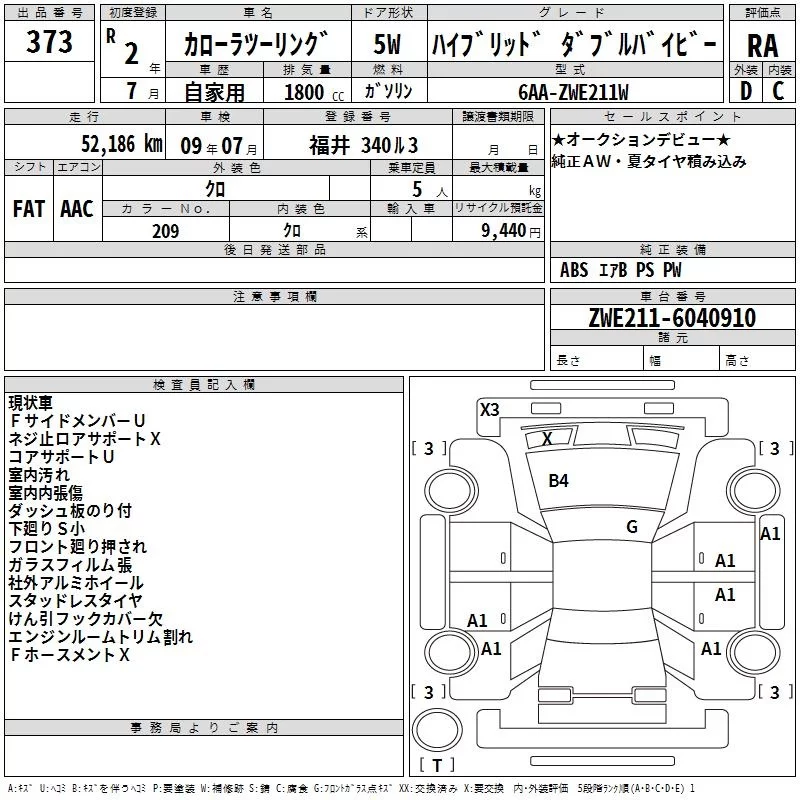 Toyota COROLLA TOURING с аукциона Японии TAA Chubu лот № 373